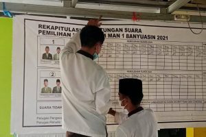 Pangkalan Balai, Humas. Pengumuman hasil perhitungan suara Pemilihan Umum (Pemilu), Ketua dan Wakil Ketua Organisasi Siwa Intra Madrasah (OSIM), yang diselenggarakan oleh Panitia Pemilihan Umum OSIM…