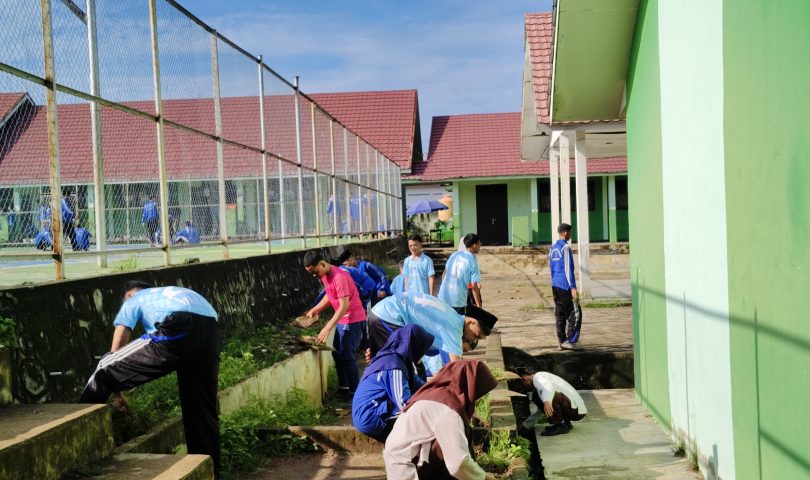 Kegiatan gotong royong keluarga Man 1 Banyuasin (Mansaba) guna membersihkan lingkungan Madrasah, Jumat (8/11). Kegiatan ini diikuti oleh seluruh peserta didik Mansaba, dan guru juga ikut serta dalam kegiatan gotong royong ini guna mengarahkan dan mengawasi para siswa/i.