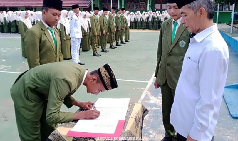 Kepala MAN 1 Banyuasin (Mansaba) Veri Yulianto melantik secara resmi, Pengurus OSIM MAN 1 Banyuasin periode 2022/2023, pada upacara pelantikan Pengurus OSIM, di lapangan Utama Mansaba, Senin (10/10).