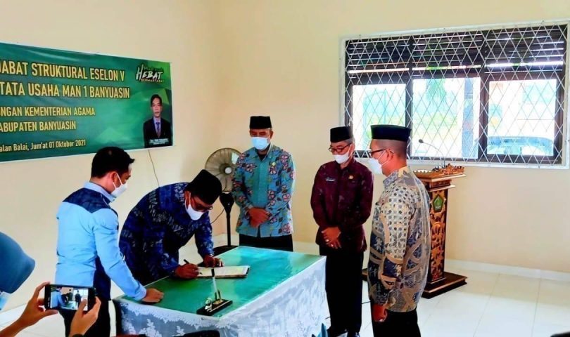 Setelah lama mengalami kekosongan jabatan Kepala Urusan Tata Usaha (Kaur TU), pada MAN 1 Banyuasin (Mansaba), akhirnya pada hari ini Jum’at (1/10), Kaur TU yang baru akhirnya dilantik, oleh Kepala Kantor Kementerian Agama Kabupaten Banyuasin, di ruang guru Mansaba. Kaur TU yang dilantik berdasarkan Surat Keputusan Kepala Kantor Wilayah Kementerian Agama Provinsi Sumatera Selatan tersebut, Alfarisi yang sebelumnya menjabat sebagai Pranata Keuangan Kemenag Banyuasin.