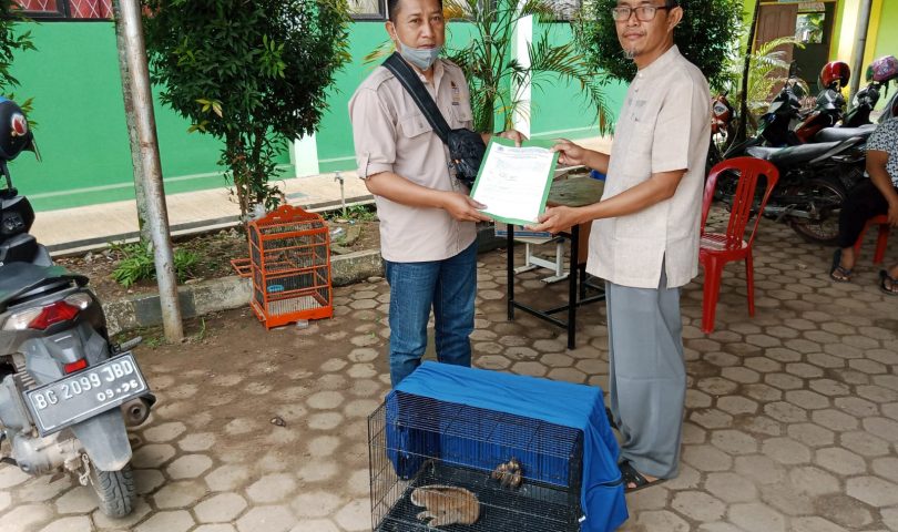 MAN 1 Banyuasin (Mansaba) serahkan hewan langka yang dilindungi, kepada Badan Konservasi Sumber Daya Alam (BKSDA) Provinsi Sumatera Selatan. Penyerahan hewan yang dikenal dengan nama hewan Kukang ini, oleh Kepala Mansaba yang diwakili oleh Kaur Tata Usaha Alfarisi, Sabtu (9/4).