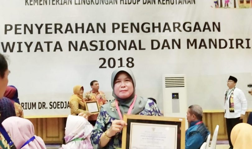 Kepala MAN 1 Banyuasin (Mansaba) Nely Septiana, M. Pd. I, menerima langsung penghargaan Sekolah Adiwiyata tingkat Nasional, yang diserahkan oleh Kementerian Lingkungan Hidup dan Kehutanan bersama Kementerian Pendidikan Republik Indonesia, di Gedung Auditorium Dr. Ir. Soedjarwo, Gedung Manggala Wanabakti Jalan Gatot Subroto Jakarta Pusat, Jum’at (21/12).