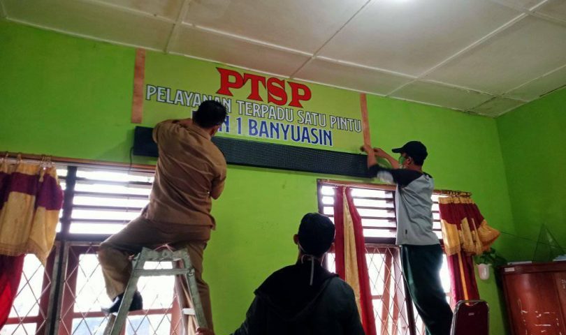 Ruang Pelayanan Terpadu Satu Pintu (PTSP) di MAN 1 Banyuasin (Mansaba), dilengkapi dengan running text. Pemasangan running text berukuran panjang 2 meter ini, dilakukan oleh staf Tata Usaha Mansaba, Senin (12/10).